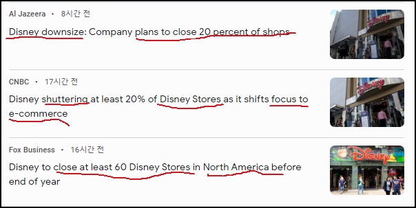 디즈니는 북미의 오프라인 매장이 60곳 폐점을 할것이라 하는데요 이렇게 코로나 때문에 비대면 사업이 중시되어져서 미디어 산업의 많은부분이 바뀌어 가는점이 엿보여집니다. 관련 미국뉴스도 가져와 보았습니다.