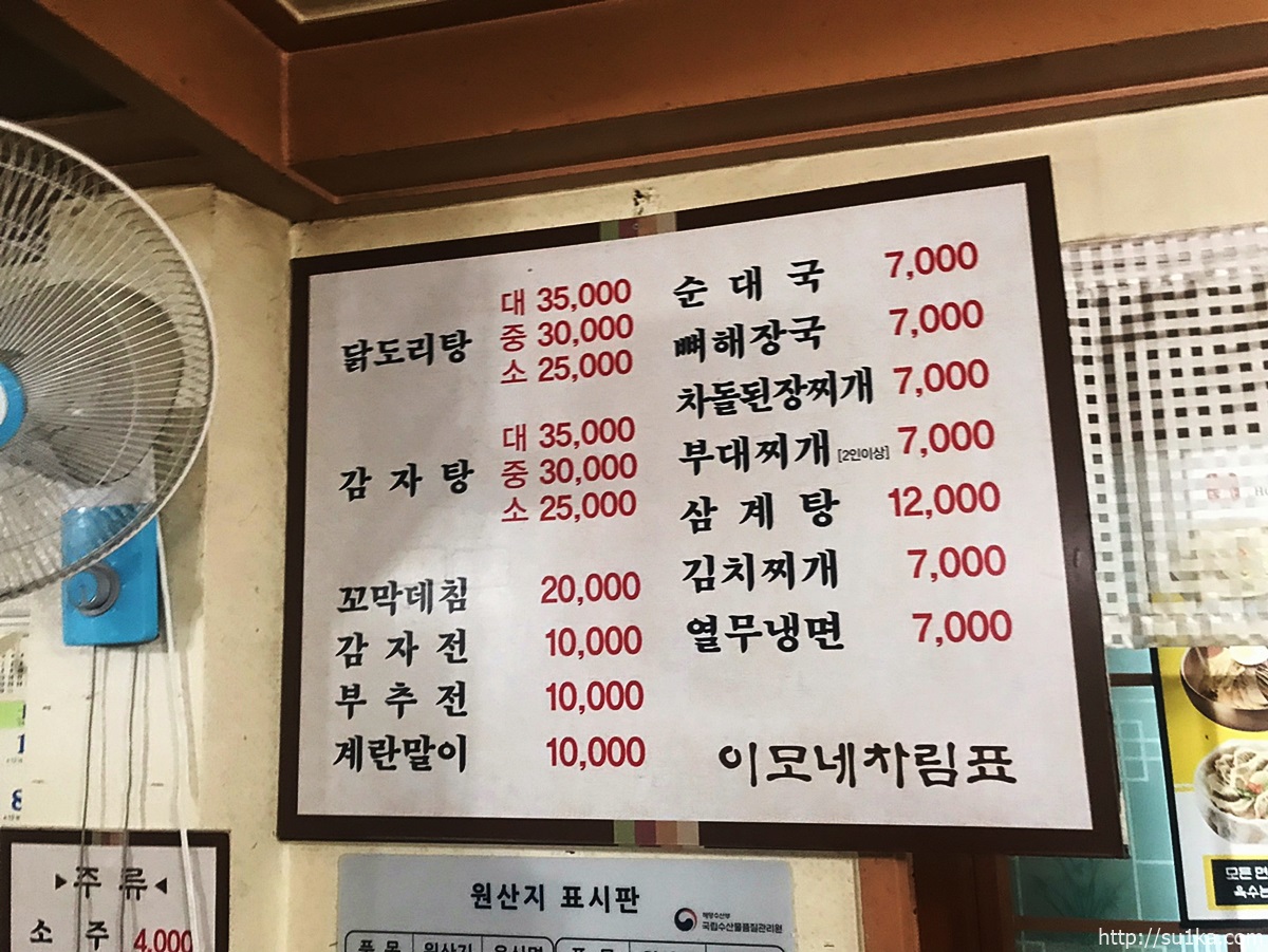 바로 이곳이고요 닭도리탕에 감자탕, 꼬막데침 메뉴라든가 감자전에 계란말이 메뉴가 있고요