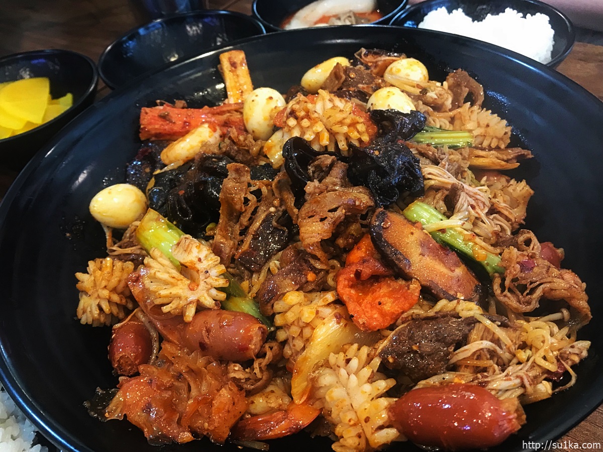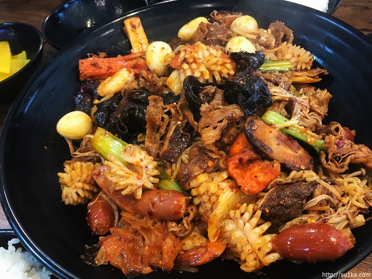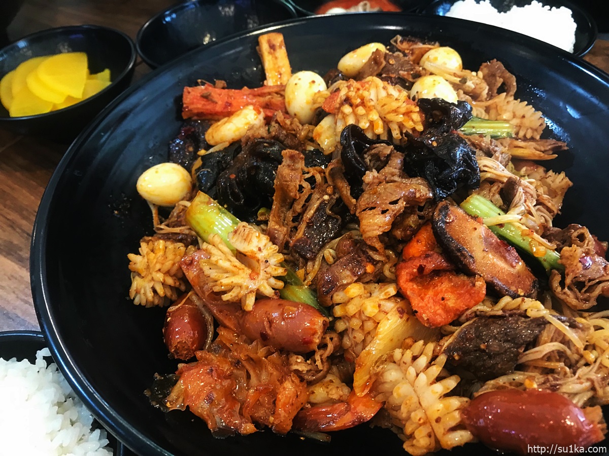 제가 좋아하는 동글동글 메추리알과 흑목이버섯, 표고버섯 그리고 해산물과 소고기가 다 들어가 있어서 맛이 굉장히 리치했습니다.