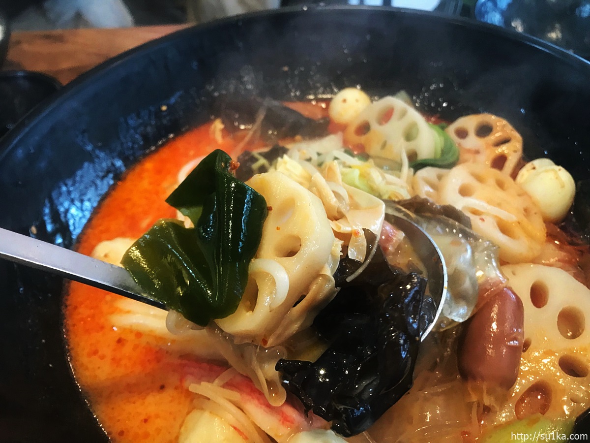 입안이 정말 얼얼하고 찌릿찌릿한데요 야채들의 조합이랑 특히 '라면'사리가 좋았어요