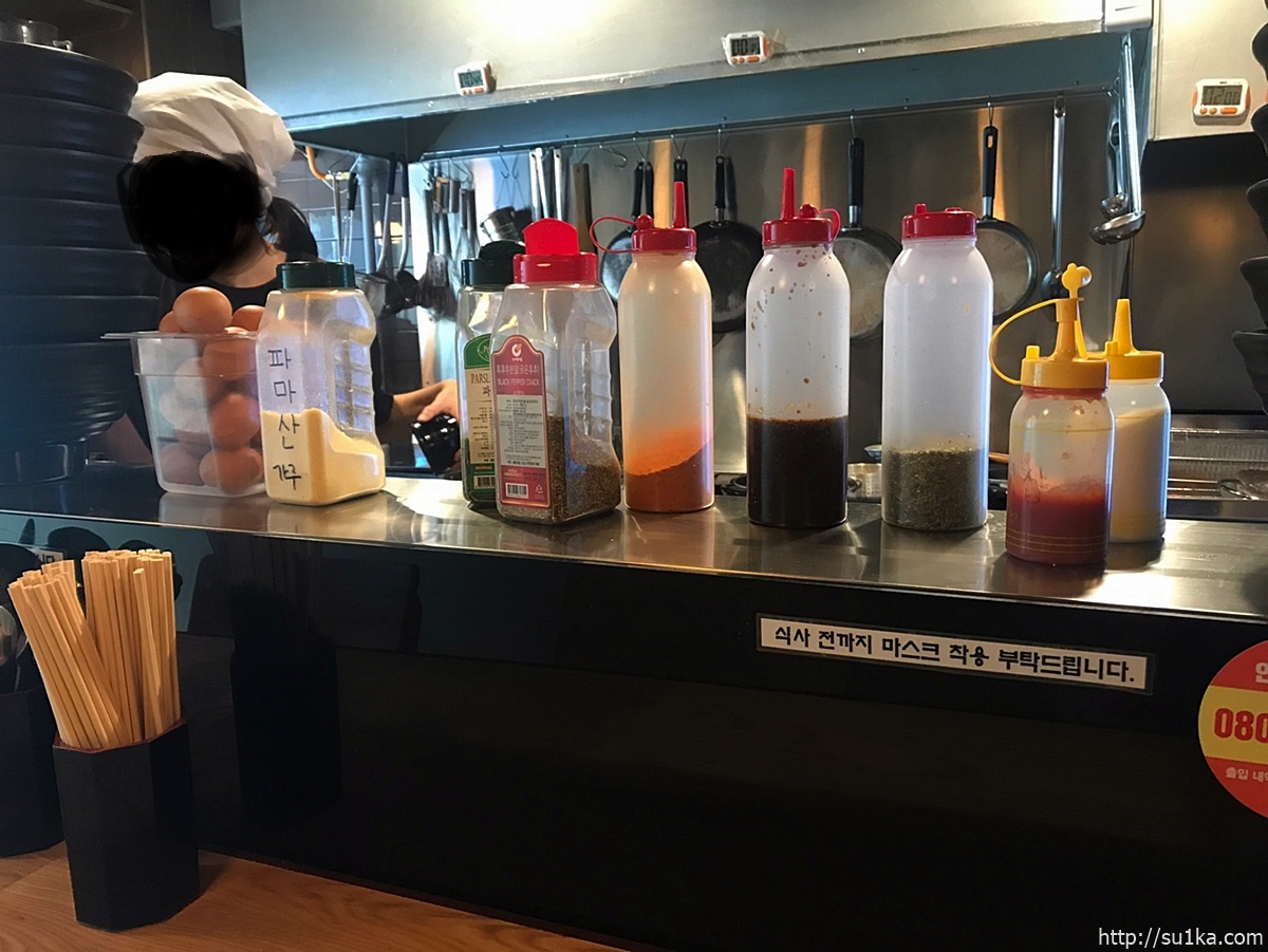 일본라멘집등은 혼자서 먹을수있는 자리가 마련되어 있는데요 조리하는 곳이 그대로 보이는 이곳에 안착해 주었어요