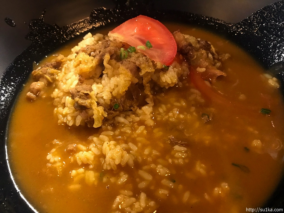 토마토가 얹어져 있는 소고기 카레입니다. 가격은 7000원대였습니다.