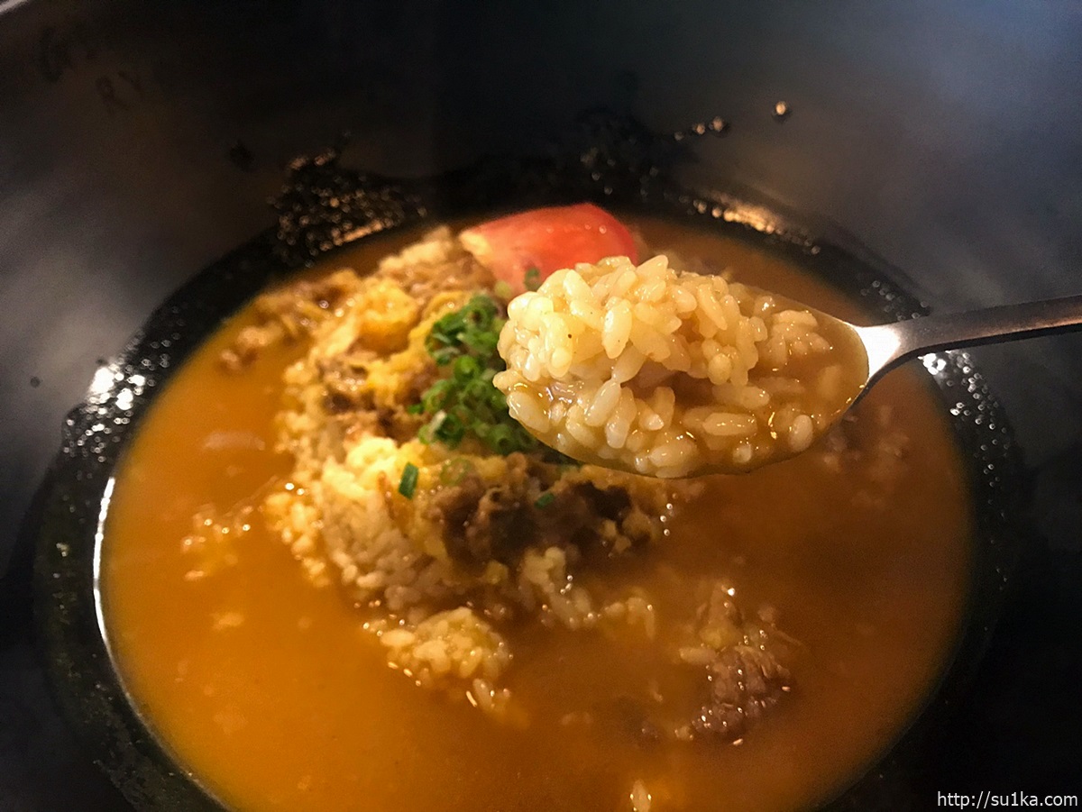 엄청 큰 그릇에 풍성한 밥과 카레듬뿍, 소고기약간이 얹어져 있습니다.