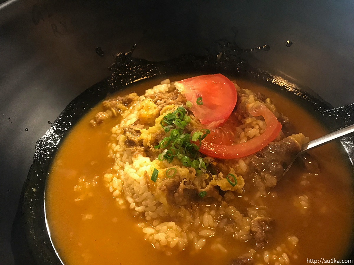 엄청 큰 그릇에 풍성한 밥과 카레듬뿍, 소고기약간이 얹어져 있습니다.