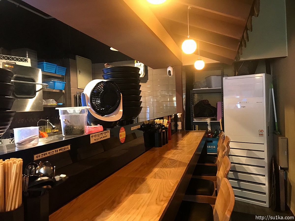 일본라멘집등은 혼자서 먹을수있는 자리가 마련되어 있는데요 조리하는 곳이 그대로 보이는 이곳에 안착해 주었어요