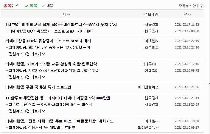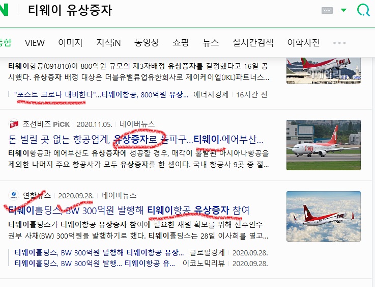 또한 유상증자 규모는 800억원이라는 뉴스가 있었는데요, 티웨이등의 항공관련주들이 여러가지 노력으로 포스트코로나19를 이겨내려 하는 노력이 보여집니다.