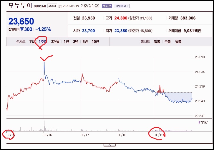 모두투어 1주일 차트입니다.