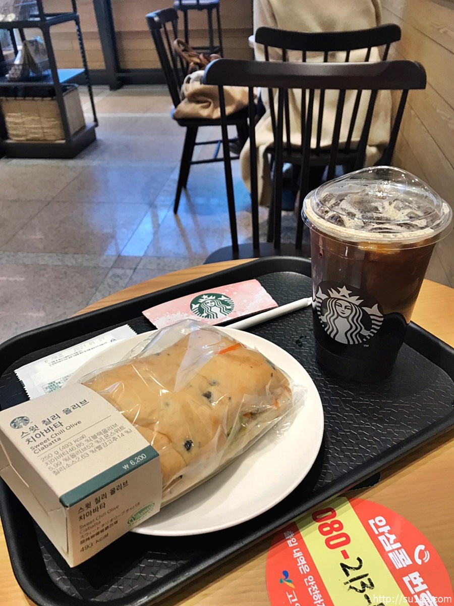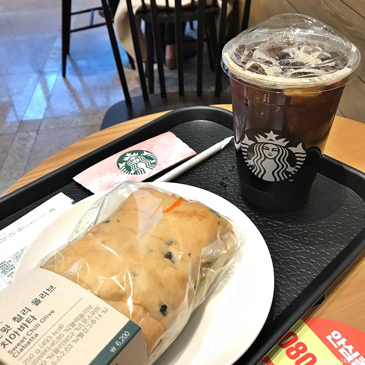 스타벅스 샌드위치 스윗 칠리 올리브 치아바타 + 아메리카노 본문