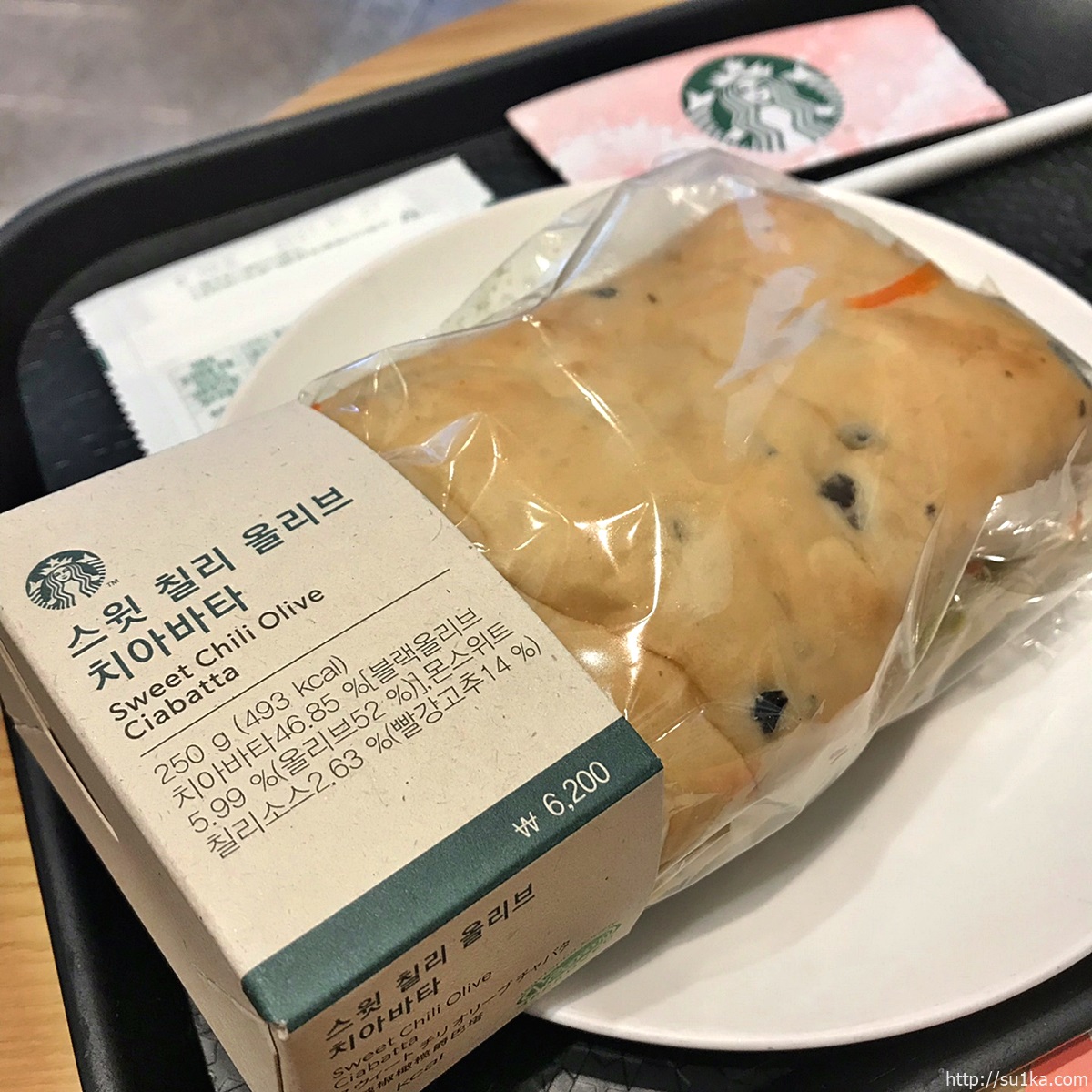 스타벅스 스윗 칠리 올리브 치아바타 샌드위치는 가격이 6200원이에요.