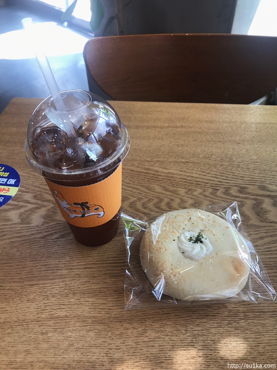기억의 남는 빵에서 이날은 아메리카노에 감자크림치즈빵인가? (이름은 정확하지 않음)먹었습니다