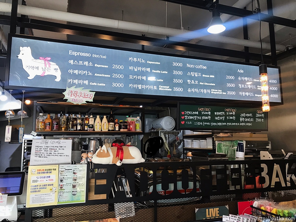 그리고 시그니처 캐릭터는 웰시코기 강아지인데요 실제로 가게에서 키우고 있는것 같았습니다