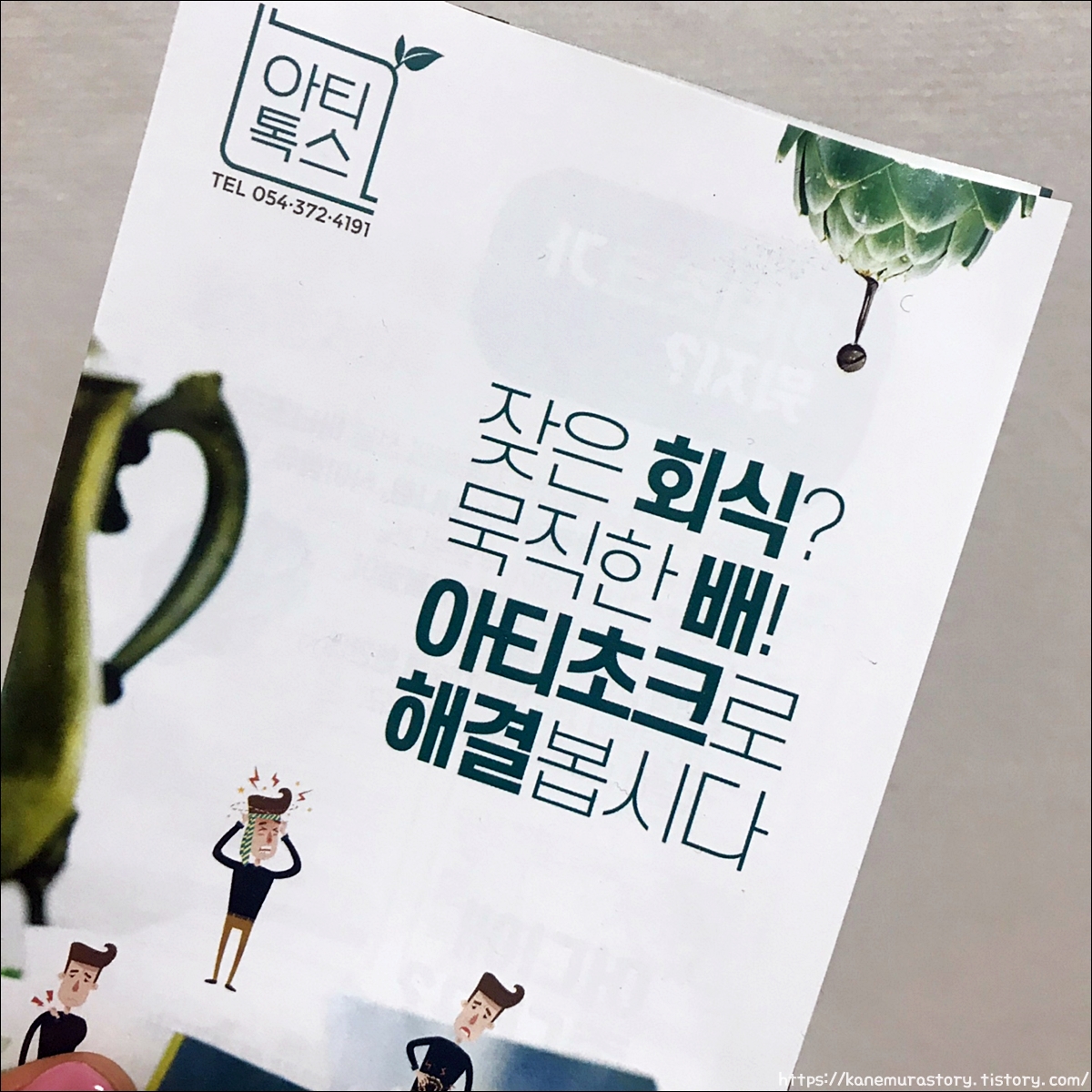 같이 딸려온 설명서를 읽어주어도 좋죠~ 잦은 회식이나 묵직한 배에는 아티초크로 해결해 보자고 써있네요.