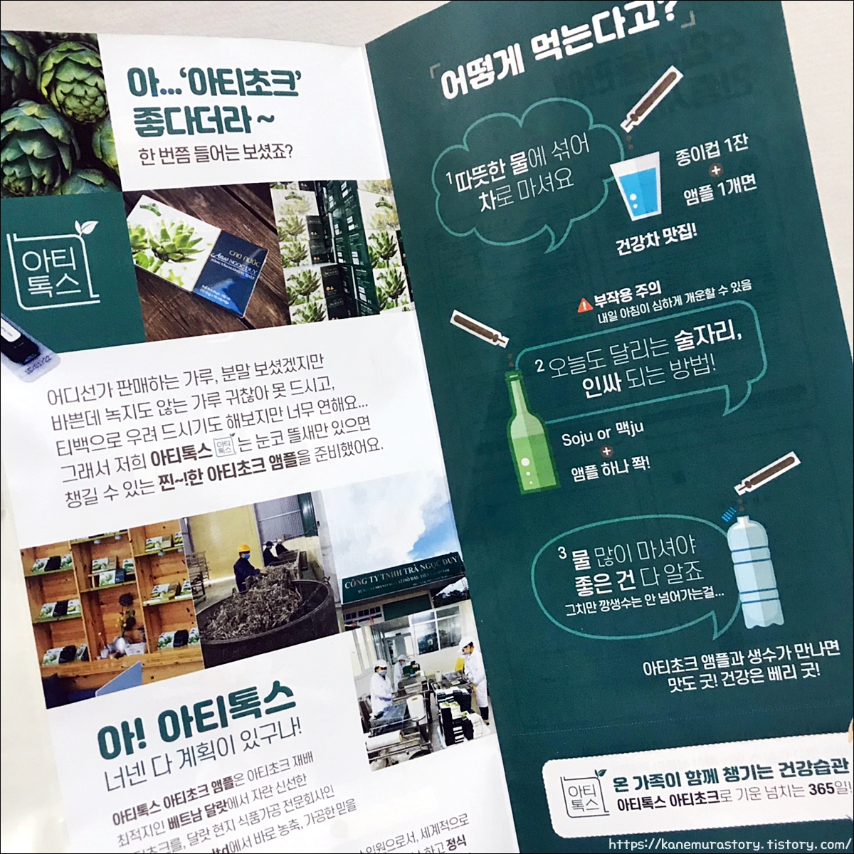 따뜻한 물에 섞어마셔도 되고 찬물에 섞어마셔도 됩니다. 가루나 분말형태로 먹는 것보단, 개인적으로 앰플 형태가 간단하니 먹기 좋더라고요. 물에 그냥 짜 주기만 하면 되니까요. 아티톡스는 아티초크 앰플을 생산할 때 재배 최적지인 베트남의 달랏지방 것들로 이용해서 만드는가 봅니다. 그래서 식품가공을 전문적으로 현지에서 해서 이렇게 소비자들에게 멋진 제품으로다가 납품을 하고 있네요!