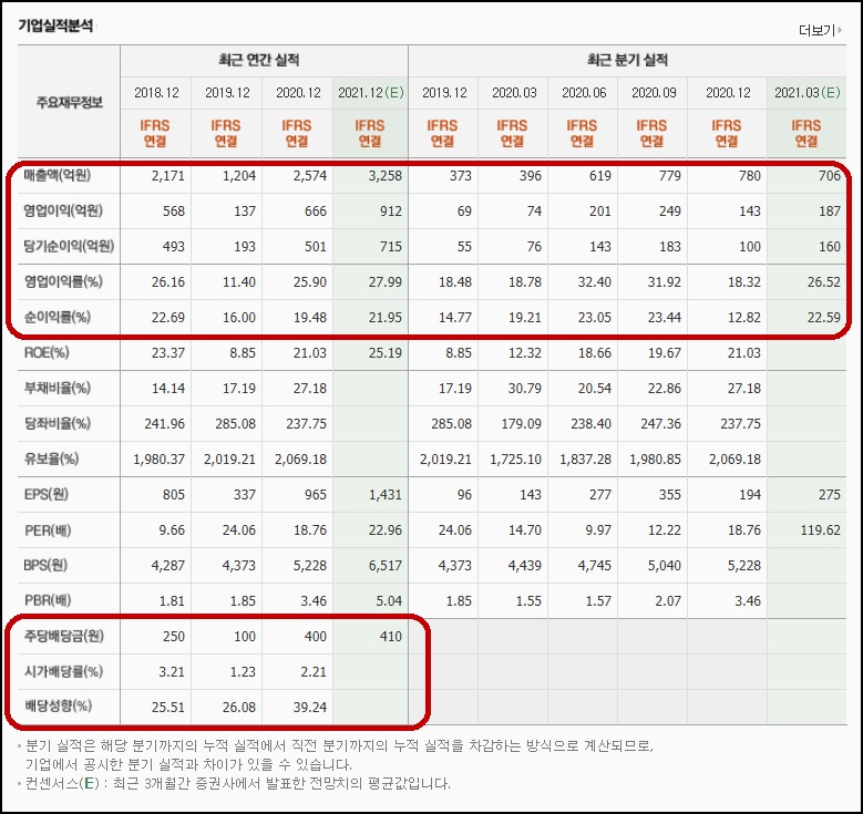 이번엔 기업실적분석과 최근 연간실적, 최근 분기실적을 보며 주요재무 정보를 분석해보겠습니다.