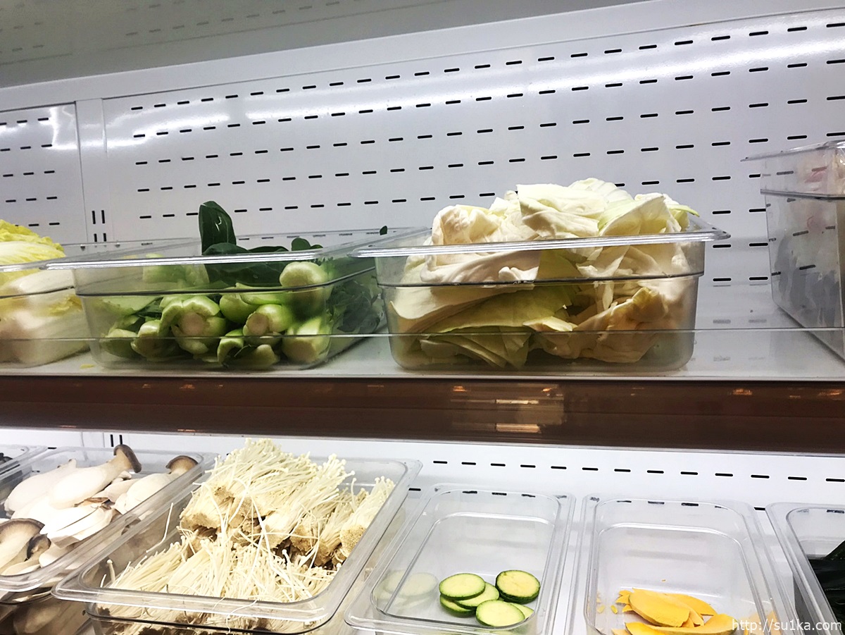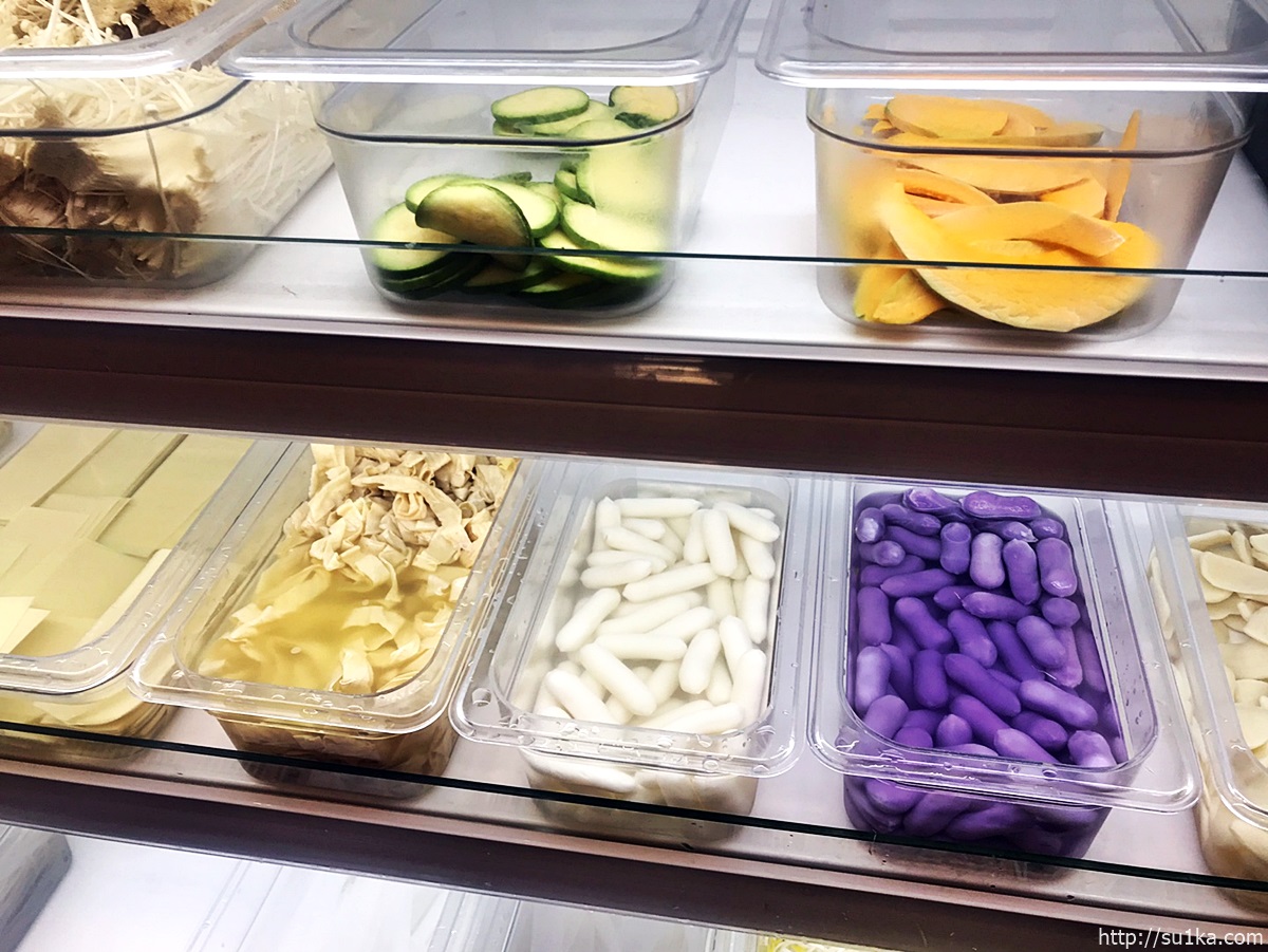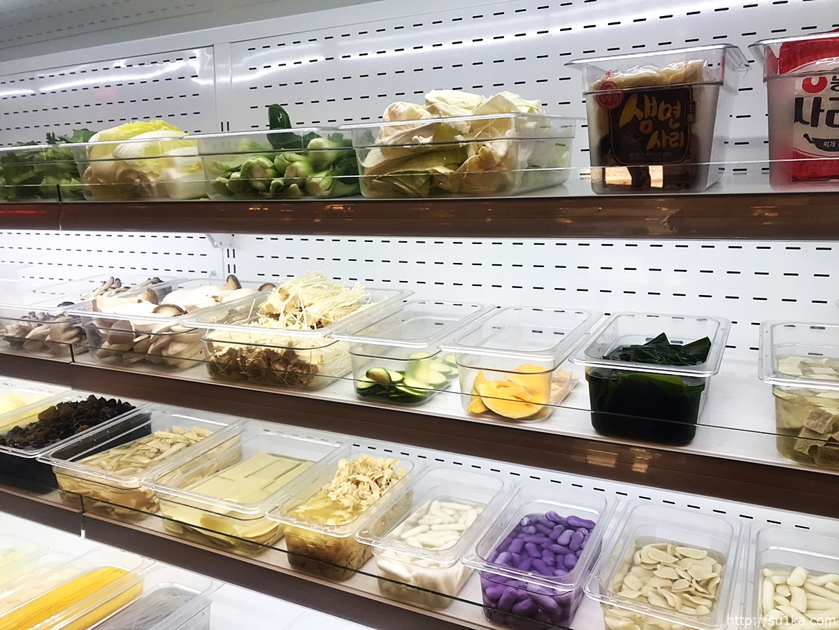 마라탕/마라샹궈 등을 셀프로 가져올수 있는 셀프 채소코너와 밥셀프, 소스셀프 코너입니다