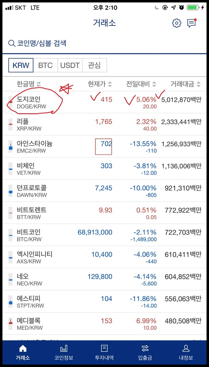 업비트 앱에서 도지코인을 거래할수 있으며, 도지데이 시세역시 확인 가능합니다. 저는 그래서 업비트 모바일 앱으로 가격을 살펴보는 편입니다.