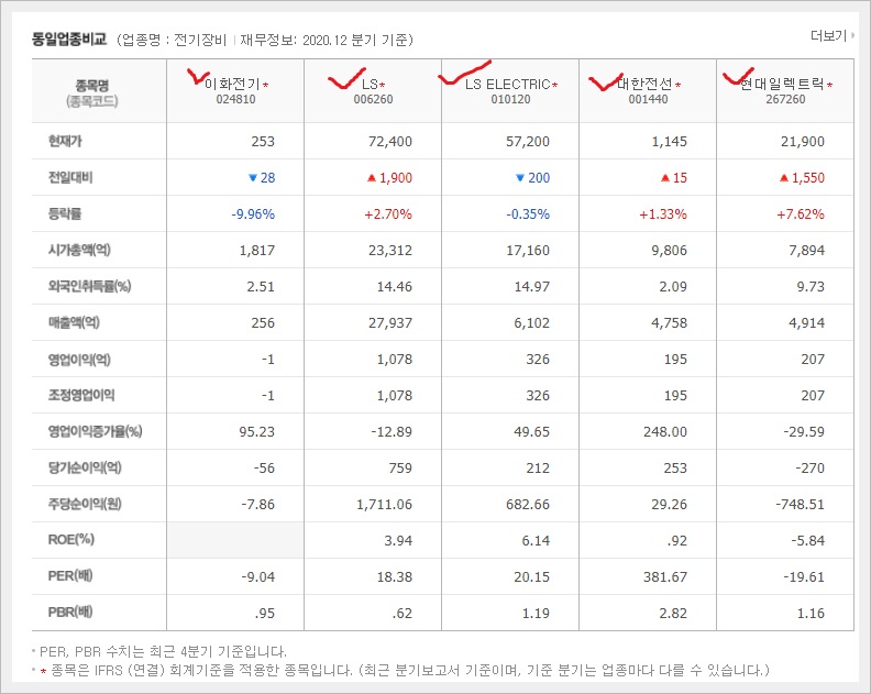 이화전기와 LS, LS ELECTRONIC, 대한전선, 현대일렉트릭이 있습니다