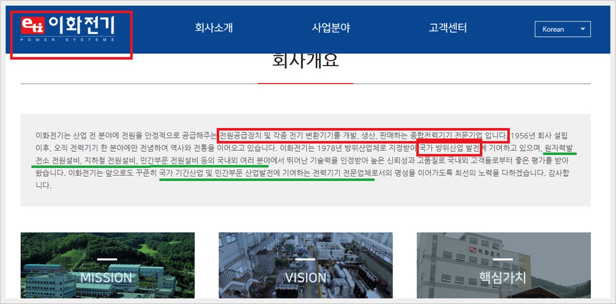 그러므로 홈페이지에도 지금도 꾸준히 국가 기간산업이나 민간부문, 산업발전에 기여하는 전력기기 전문업체라는 문구가 쓰여져있는것 같네요