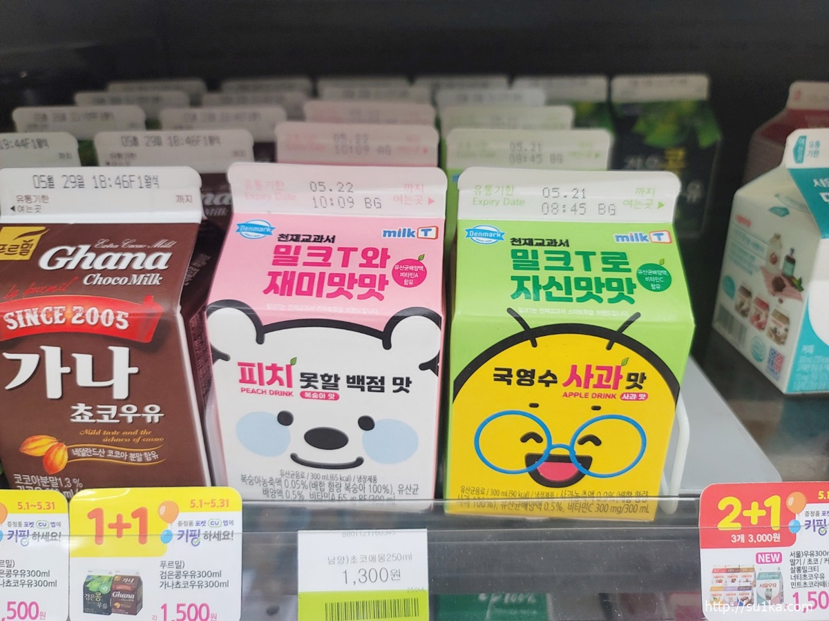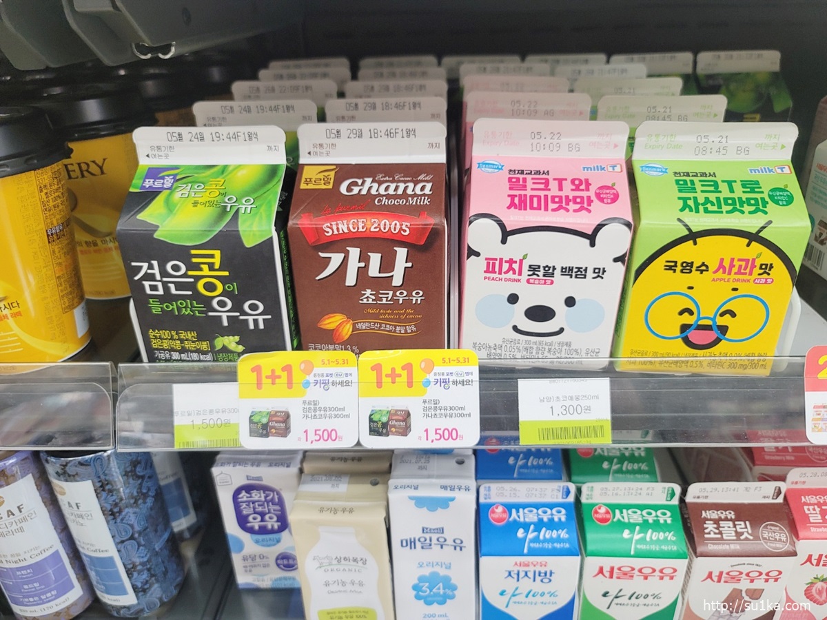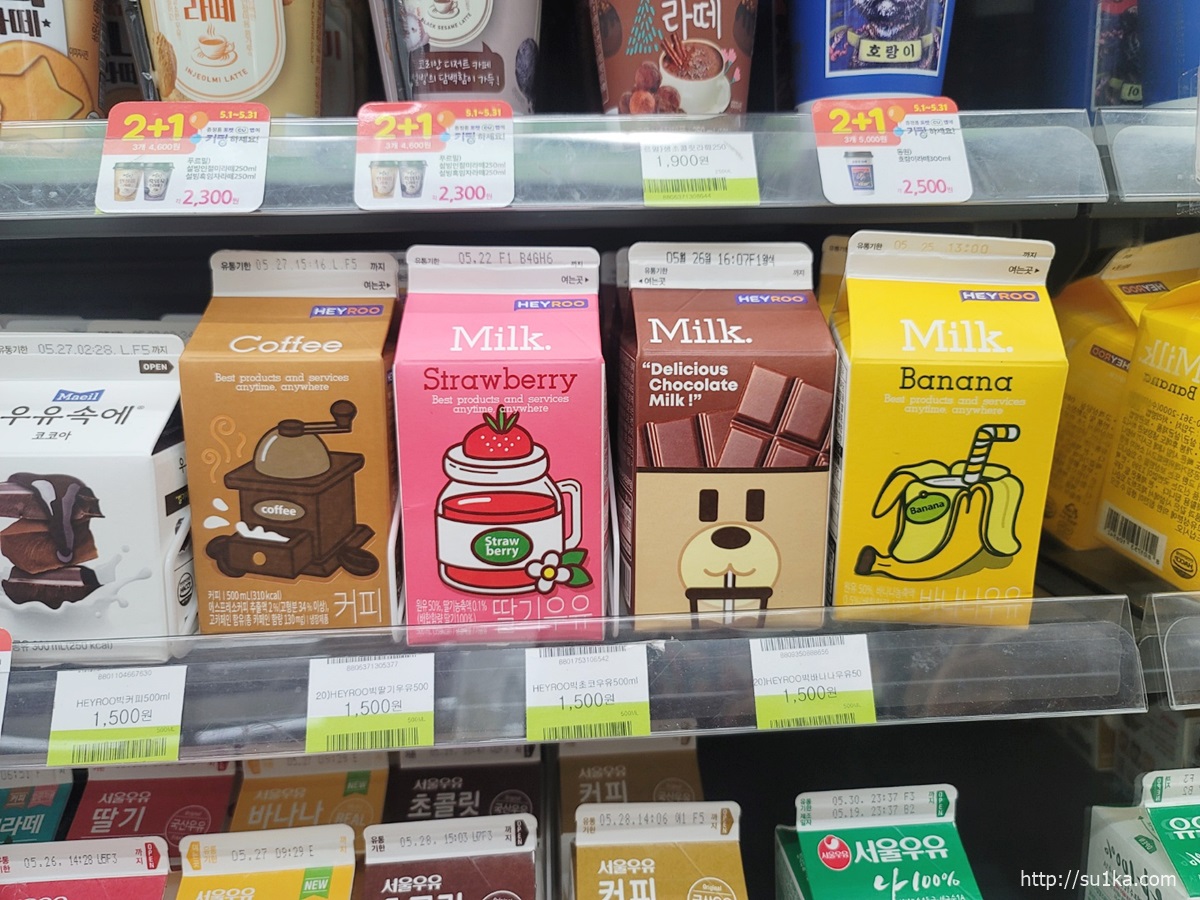 편의점 우유 가격이 비싸다는 편견이 있는데 2+1이나 1+1을 잔뜩 하고있어서 은근 저렴합니다.