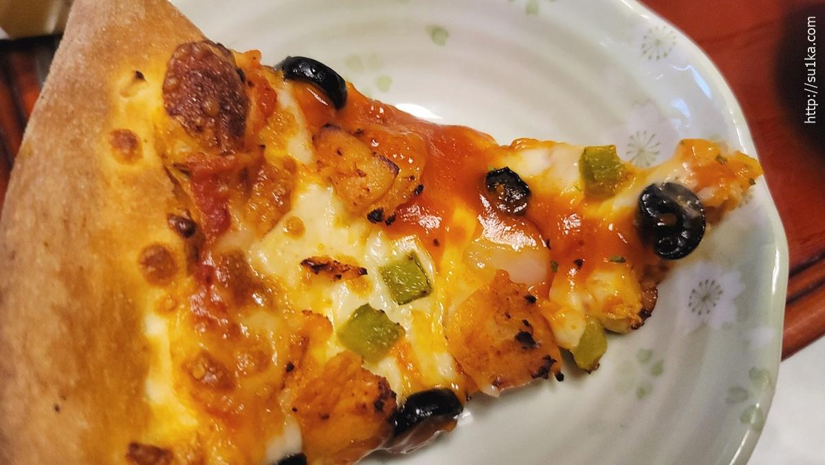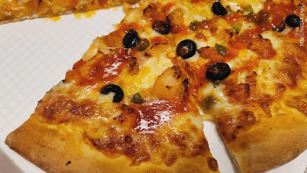 공격적인 볼륨감을 자랑하는 피자 본체입니다.