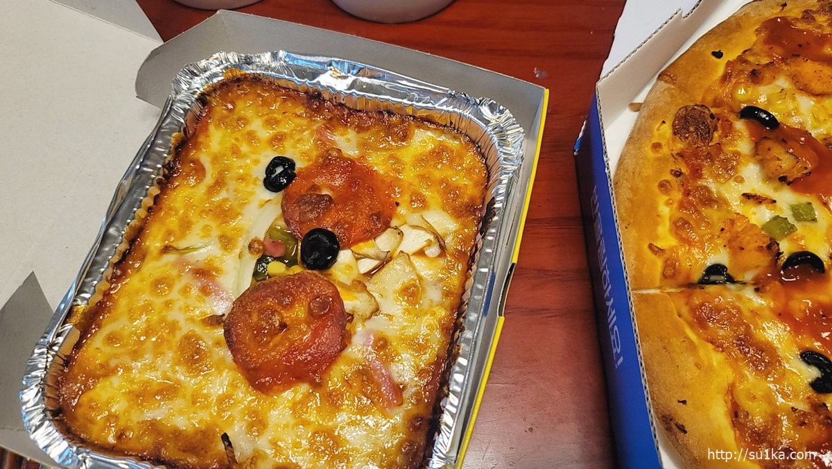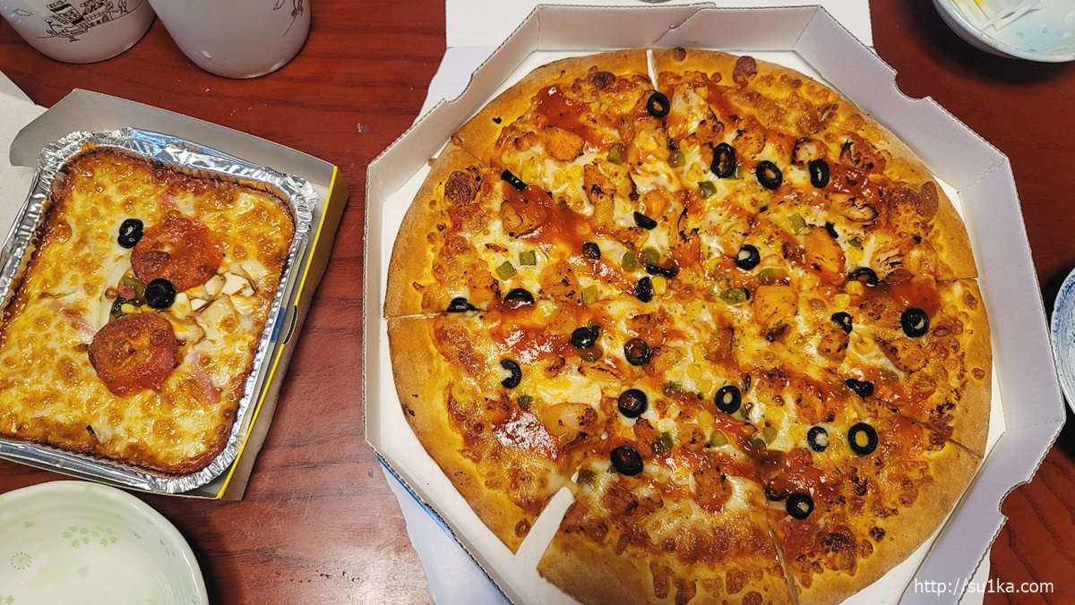 반올림에서 시킨 피자와 오븐스파게티인데요