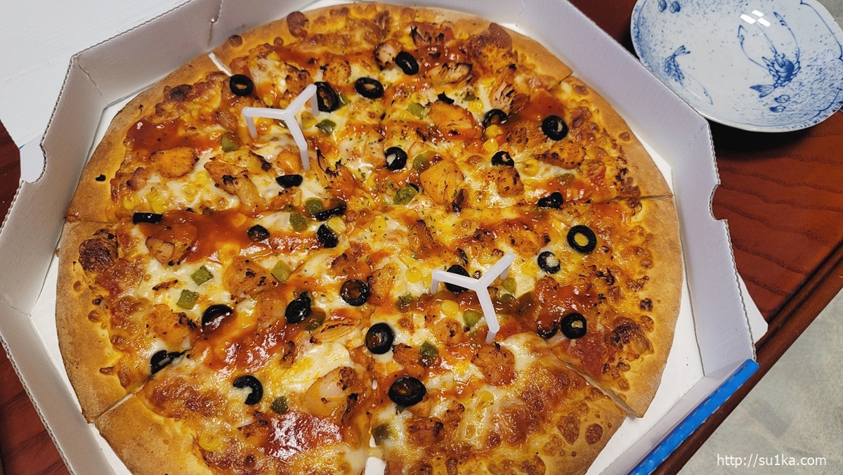 반올림피자 핫치킨 피자를 먹어봤어요.
