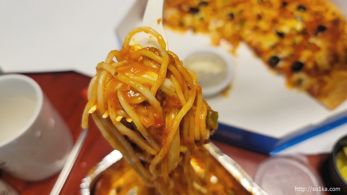 페퍼로니가 두장이나 들어있는 치즈 오븐스파게티와,