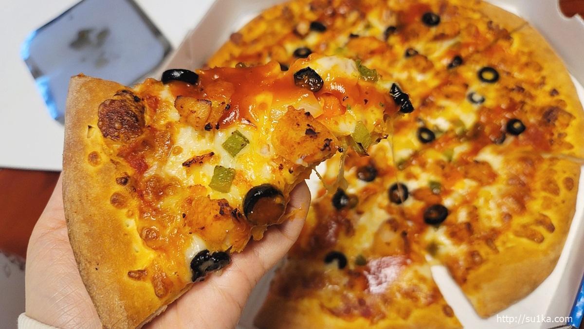 실제로 아이유양이 모델로 있는 피자를 먹으니 마음이 막 두근두근합니다!