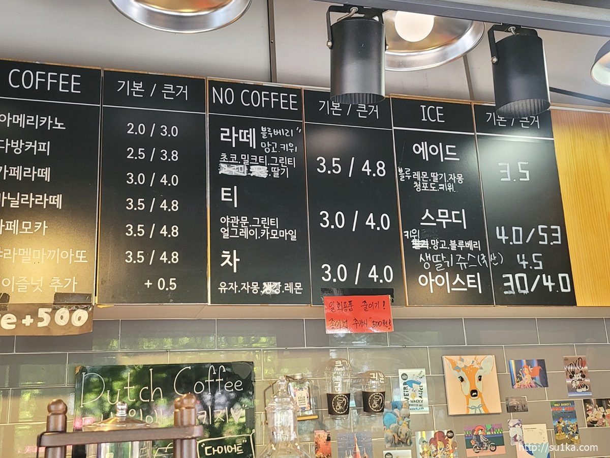 일산 주엽역 카페 조아해 가격정보 및 메뉴 입니다
