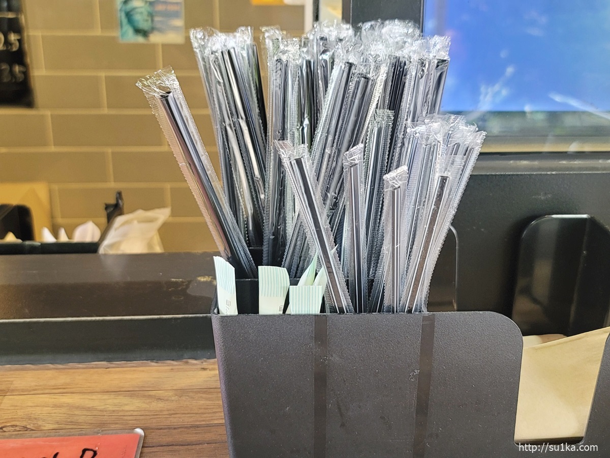 커피 나오기전에 빨대 같은것도 찍어봤어요