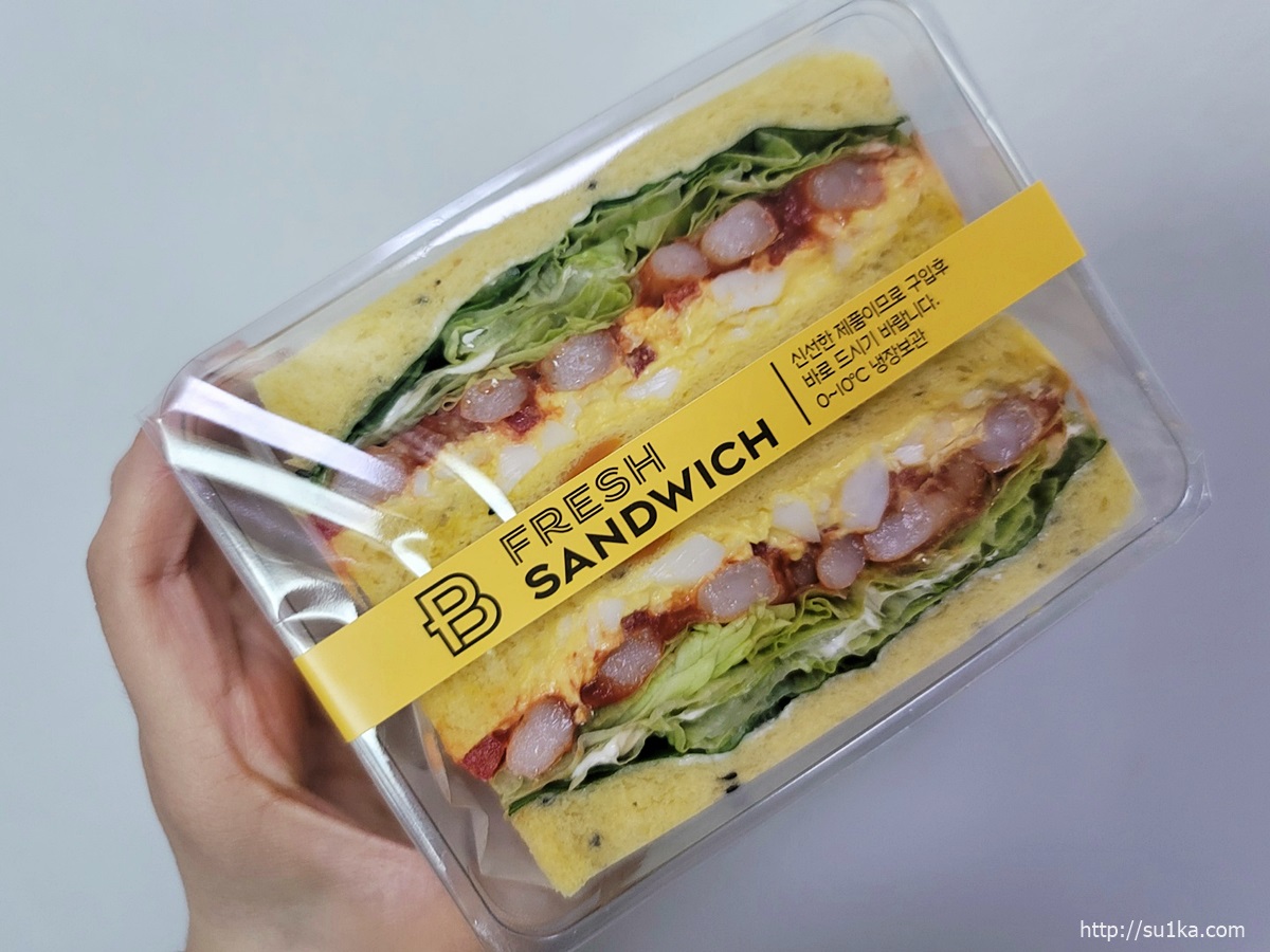 에그쉬림프 샌드위치가격: 5700원 특이사항: 새우와 에그샐러드 및 양상추가 들어있음. |