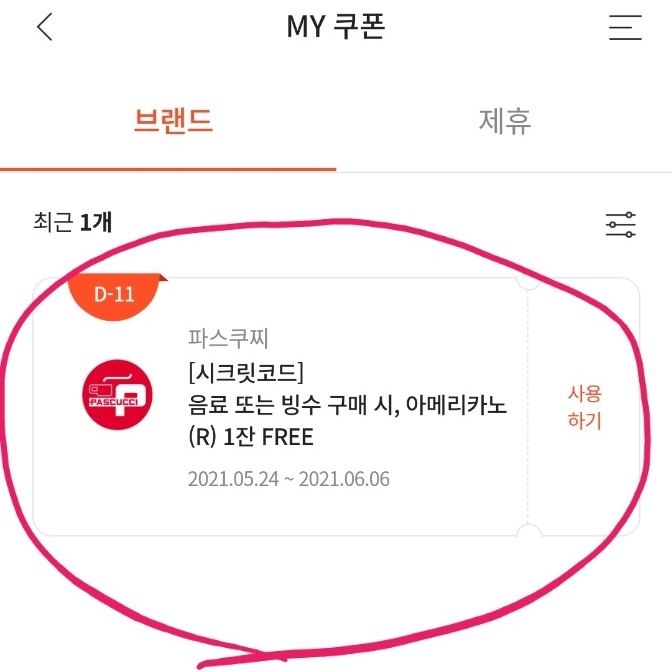 또한 시크릿 쿠폰을 사용하면 파스쿠찌 아메리카노 무료 쿠폰의 이용고객 대상으로
