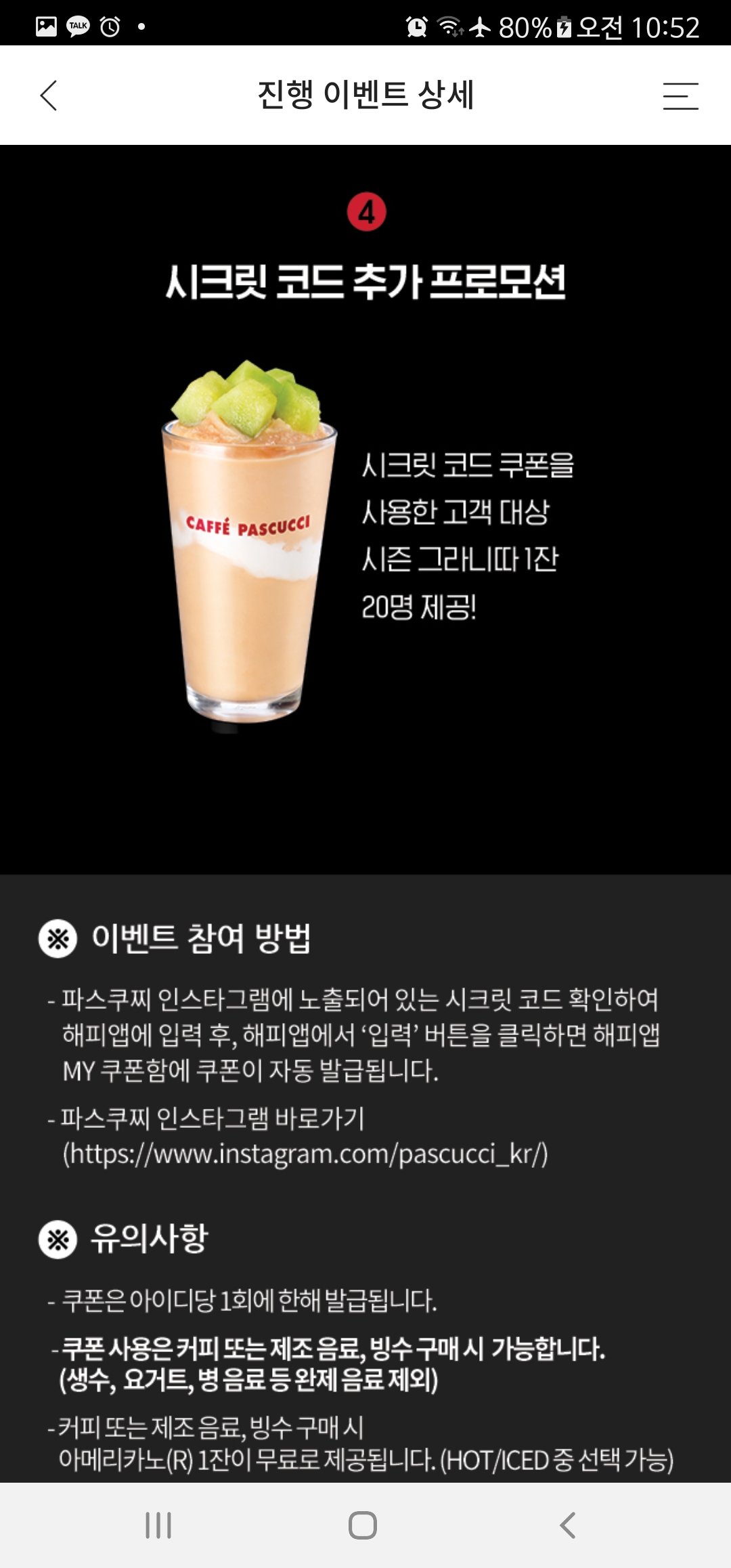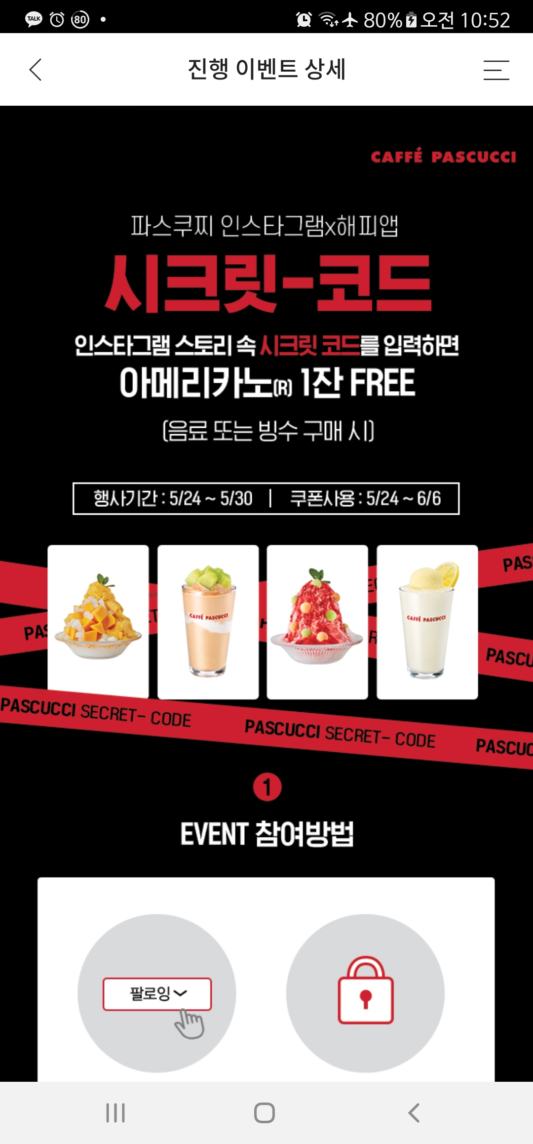 파스쿠찌 아메리카노 무료 이벤트 해피앱 시크릿코드 참여해볼까요. 본문
