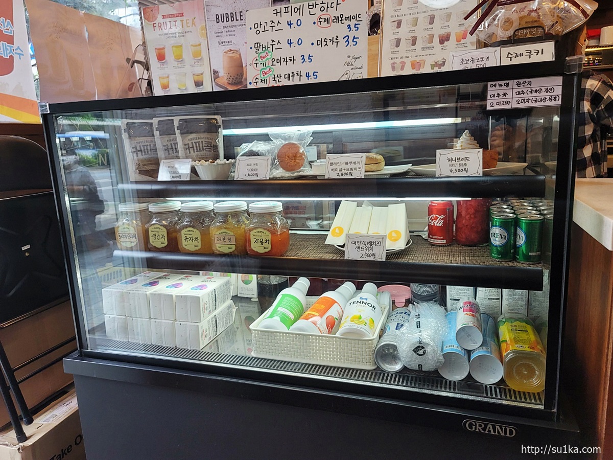 엑스트라 메뉴로 샷추가, 휘핑크림추가, 시럽추가, 아이스메뉴로 변경시 가격이 500원 추가가 된다고 합니다.
