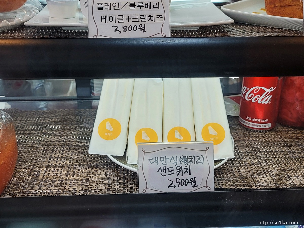 또한 대만식 샌드위치(햄치즈맛)이 2500원이고요 플레인/블루베리베이글+크림치즈는 2800원이더라고요.