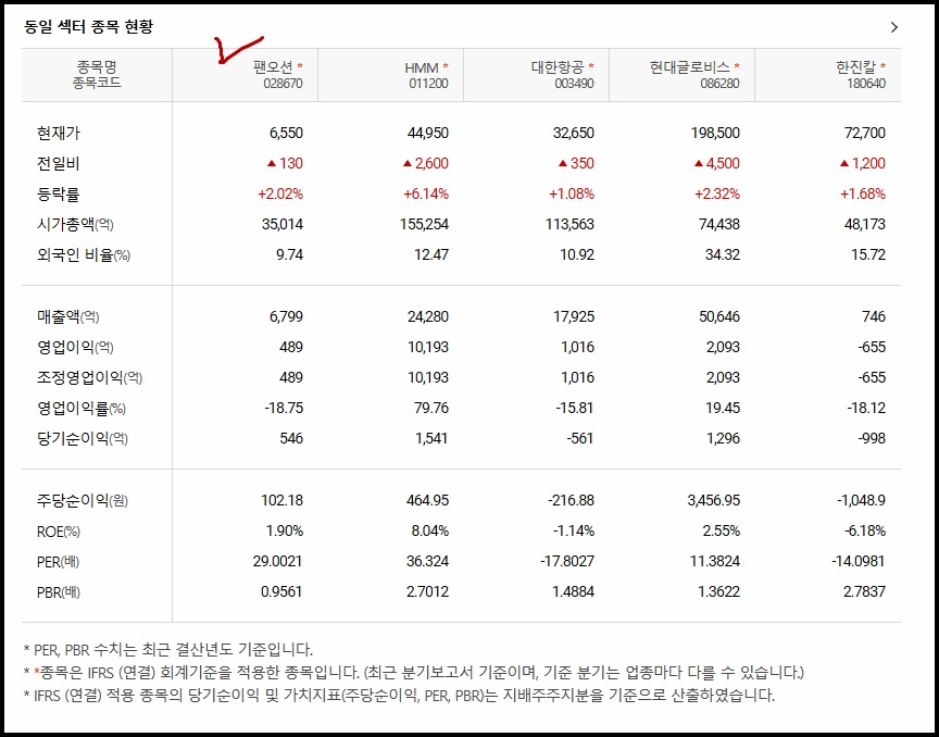 팬오션의 매출액/영업이익/조정영업이익/영업이익률/당기순이익 등을 동일섹터 종목과 비교하여 주가를 전망해보고 투자하시는 방법도 있을것 같습니다.