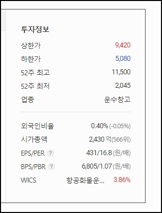 화물 물류 관련주는 선박에만 국한된것이기 아니기 때문에 여러가지 회사를 비교해서 동일섹터의 주가를 분석해보는 방법도 있으니 참고하여 보시길 바랍니다.