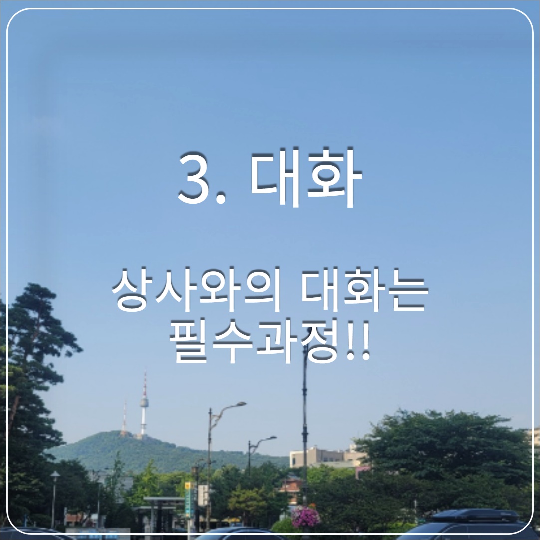 하지만 제가 다녔던 것처럼 비전이 별로인 회사가 아니라, 전도유망하며 앞으로의 가능성이 충분히 보이는 회사라면, 한사람의 상사때문에 관두는 것은 아쉬운 것이 많을지도 모릅니다. 그럴 땐 나에게 갑질이라는 부당한 처사를 한 상사와 심도깊은 대화를 하고, 이 문제를 타개해야 합니다.