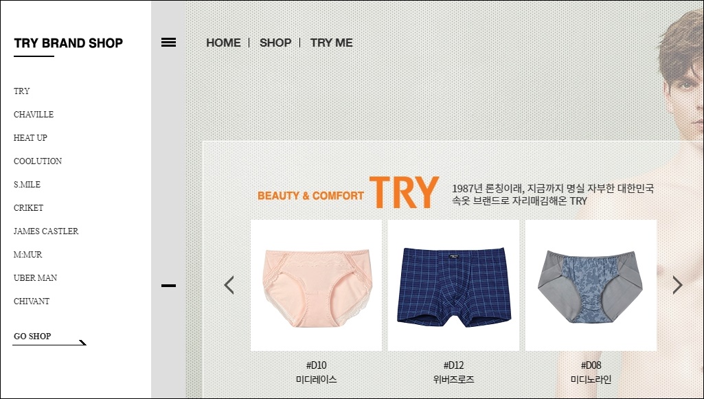 쌍방울은 아마 산하 속옷브랜드 TRY가 가장 유명할텐데요 남/녀 속옷을 취급하고 있는 것이 트라이 홈페이지에서 확인 가능합니다. 쌍방울 홈페이지랑도 연결이 되어있어서 쉽게 찾아갈수 있습니다.