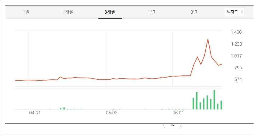 3개월 전 쌍방울 주가가 500원대였었지만 최근6월 1238원이상의 가격을 호가하기도 했던 것입니다.