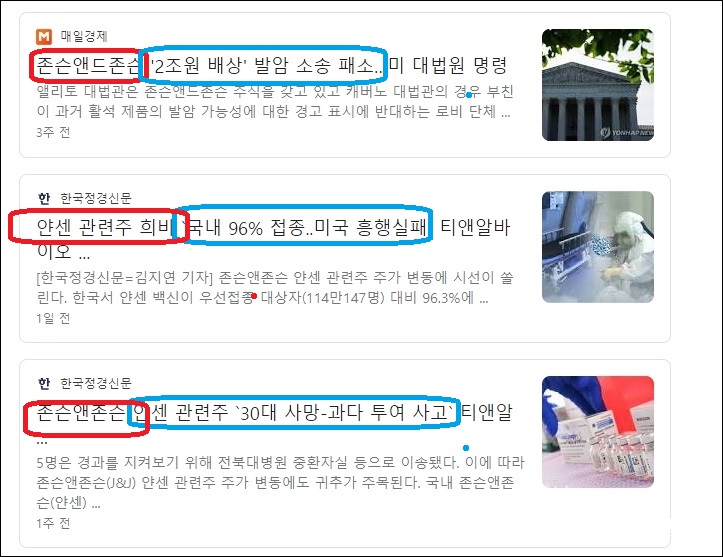그 외에도 존슨앤존슨은 얀센 관련주로 코로나19 얀센백신을 제조한 것으로 알려져 있습니다.
