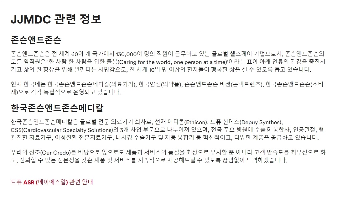 JJMDC는 우리나라 말로 번역된 홈페이지를 두고 있으므로 한국존슨앤존슨메디칼 홈페이지를 참조해주셔도 정보를 얻을수 있을것 같네요.