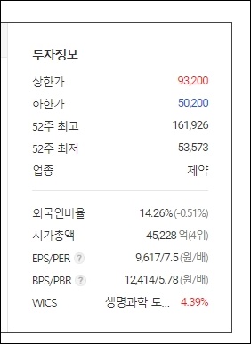 씨젠은 시총 순위로는 코스닥 4위이며, 시가총액이 4조 5,541억이 됩니다