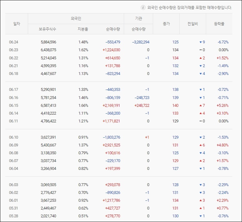 판타지오의 외국인 지분율입니다. 5월 28일 0.51%에서 현재는 1%를 넘어선 지분율을 보여주고 있습니다.
