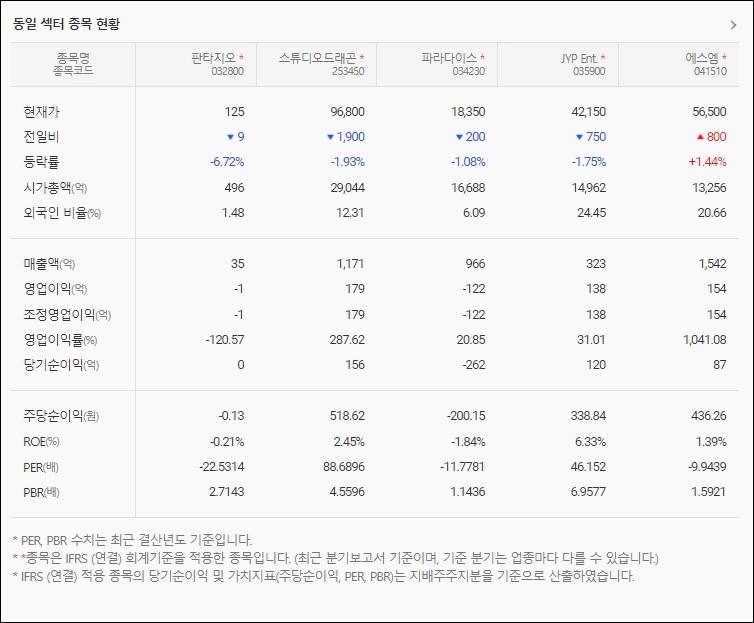 판타지오, 스튜디오드래곤, 파라다이스, JYP Ent, 에스엠 이 꼽혔습니다