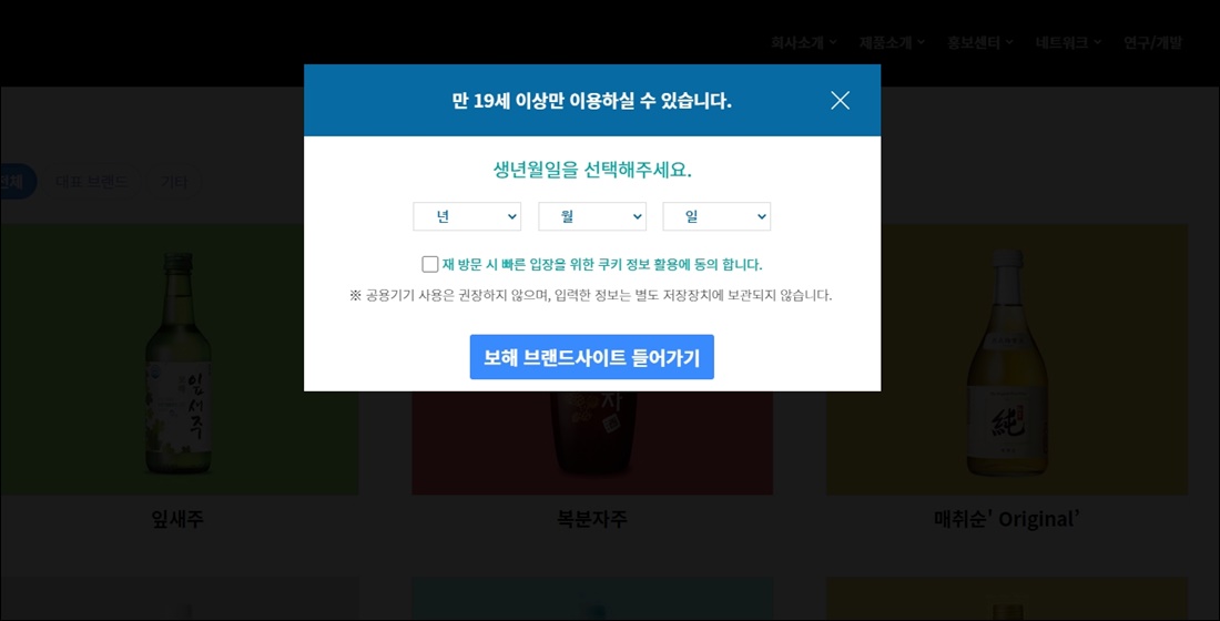 보해양조 사이트는 만 19세 이상만 이용할 수 있습니다.