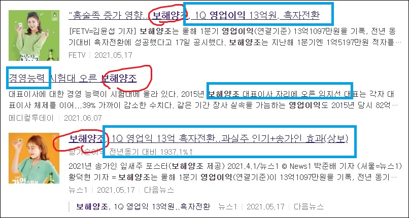 혼술족의 증가 영향으로 1Q영업이익이 13억 원으로 흑자전환이 되었다고 하는데요. 송가인 모델과 함께 잎새주로 공격적인 매출을 하고 있는 보해양조의 이러한 행보에 주목해 볼 필요가 있을 것 같습니다.