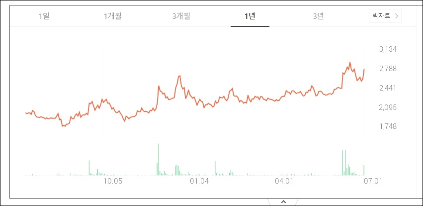 한창제지 주가는 1년치 흐름으로 보면 꾸준히 올라주고 있습니다. 천 원대의 주가였지만 현재는 2500원을 넘어섰고, 계속 택배 포장 관련주가 받는 주목과 함께 올라줄지 관련 산업의 전망과 함께 분석해보시는 방법이 있을 것 같네요.
