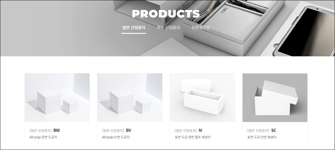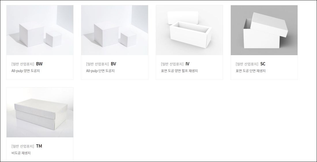 한창제지에서 생산중인 제품 목록입니다. 일반 산업용지의 종류로 BW, BV, IV 등 All-pulp 양면 도공지, 표면 도공 양면 펄프 재생지 등 여러 가지 도공지/재생지 관련 상품이 눈에 뜨입니다.