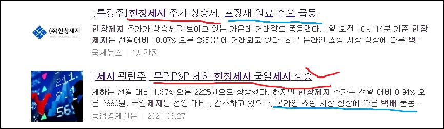 또한 한창제지 주가가 상승했는데요 포장재 원료 수요가 급등해서 그렇다는 소식입니다.